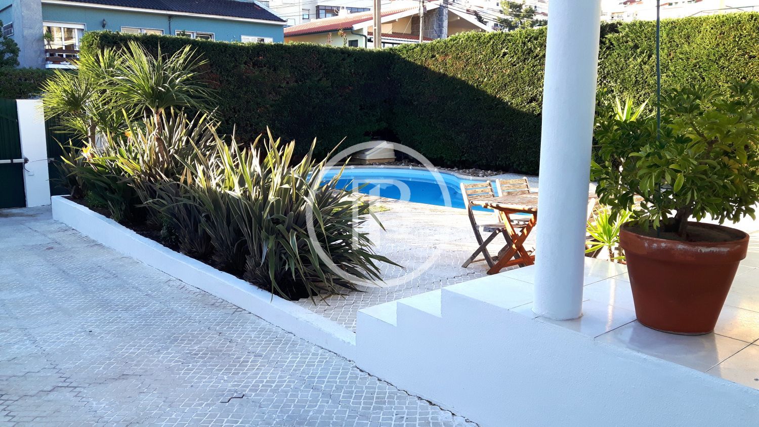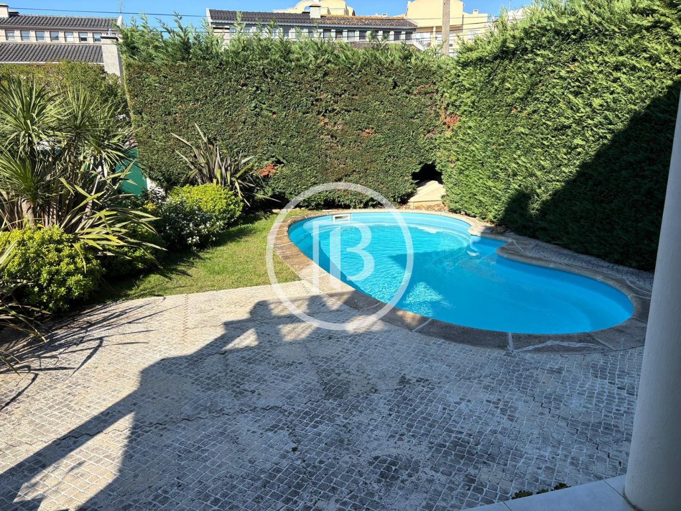 Excelente moradia com piscina e jardim perto da praia, do Parque Verde da Quinta da Carreira, comércio e serviços. Perto do Clube de Ténis, Padel e Golf do Estoril.